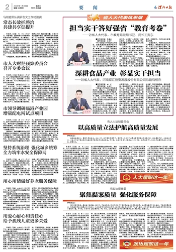 “王凯省长作的政府工作报告客观务实、振奋人心,科学擘画了新阶段河南高质量发展的宏伟蓝图,为做好今后的工作指明了方向、提供了遵循,让我们倍感振奋。”1月27日,省人大代表、河南南宫28·(中国)投资发展股份有限公司总裁马相杰接受记者采访时说。